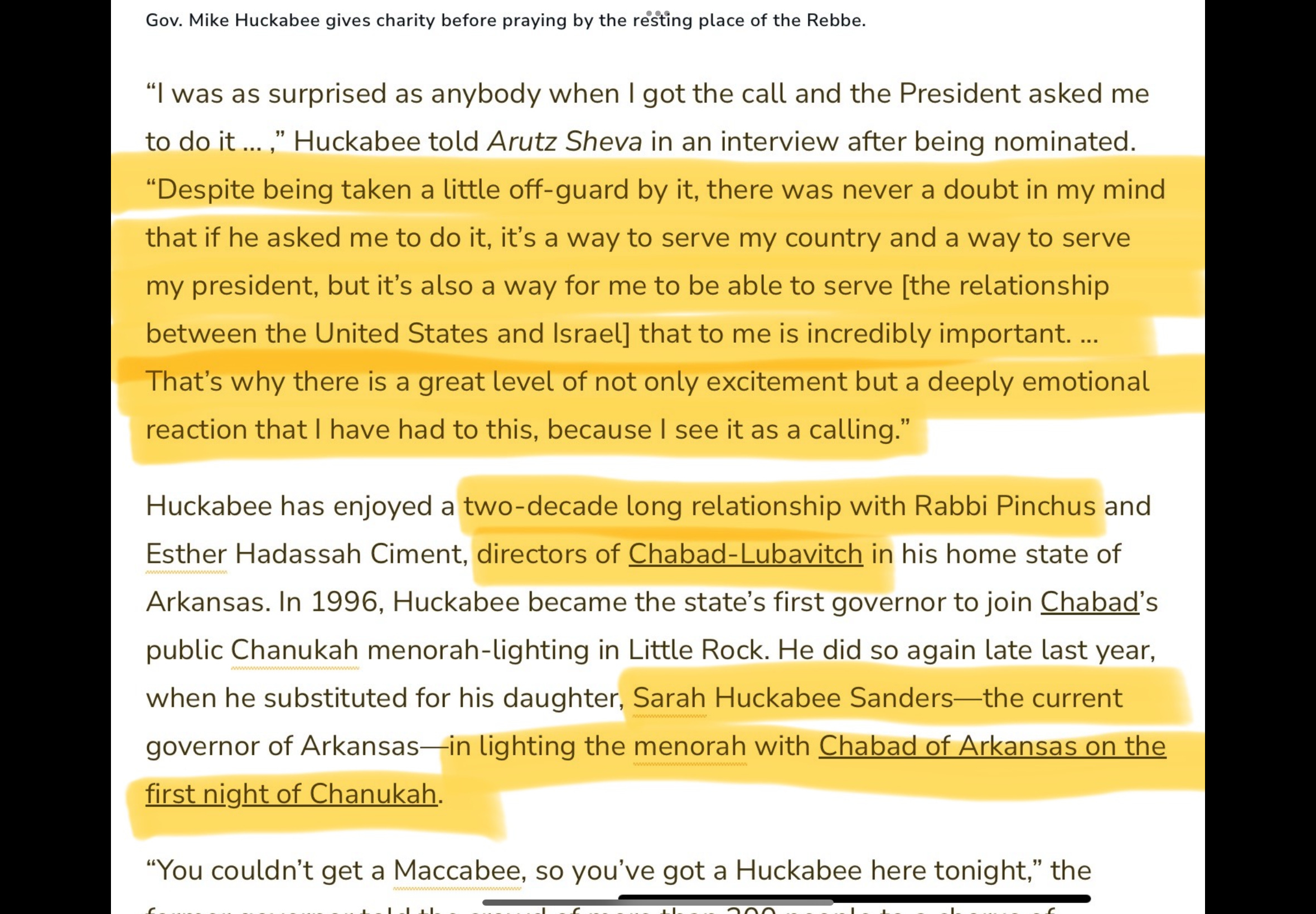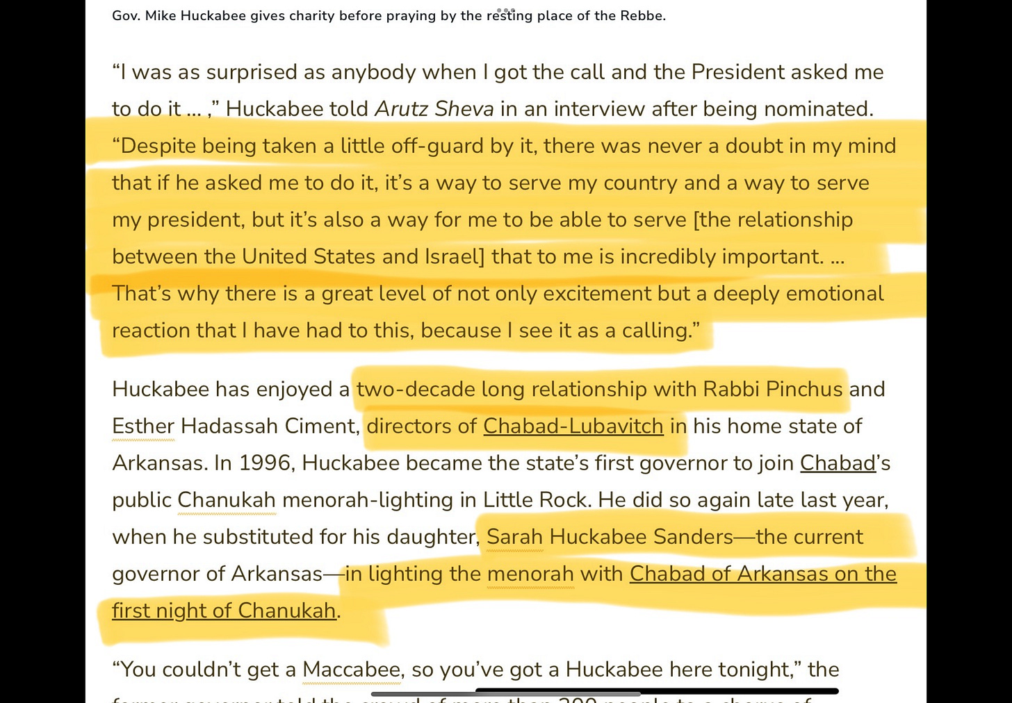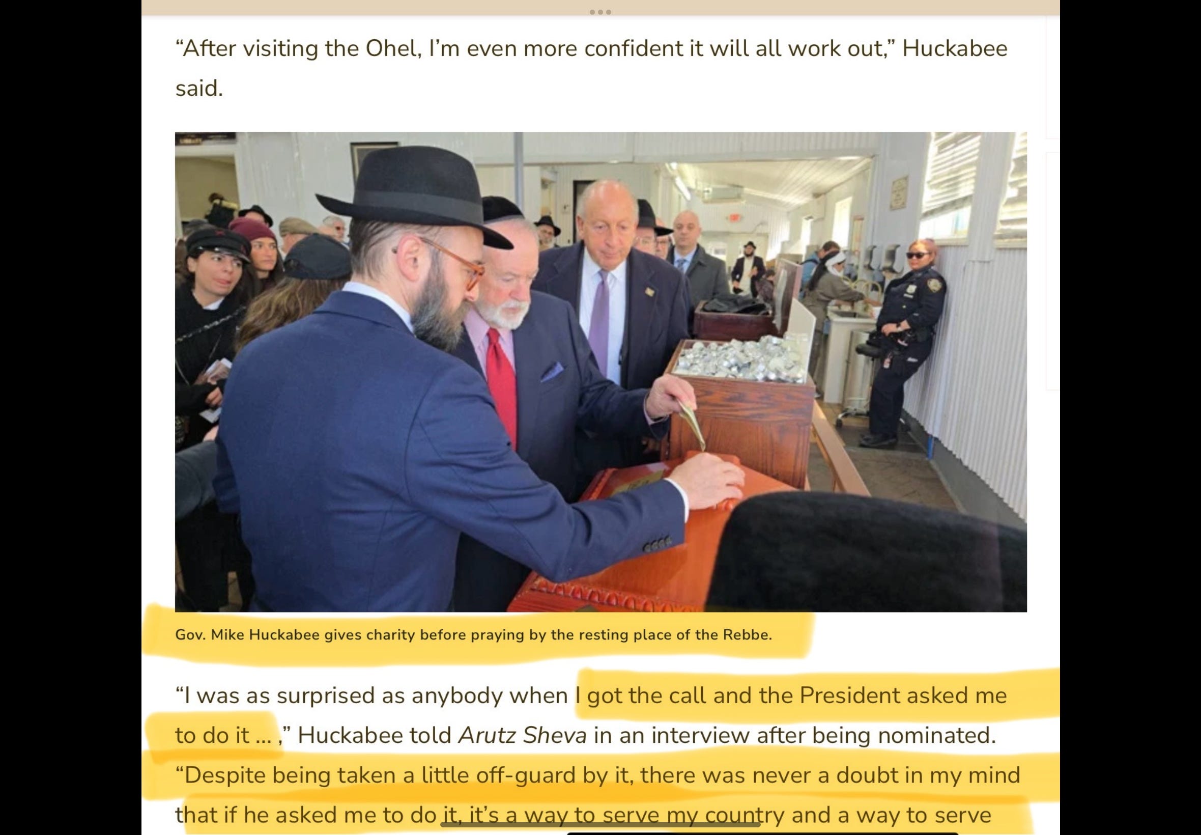 Imagine this! On March 23, 2025, just days before he was confirmed as the U.S. Ambassador to Israel, Huckabee didn’t go to a church to pray; he went to the Ohel, the resting place of the Lubavitcher Rebbe.